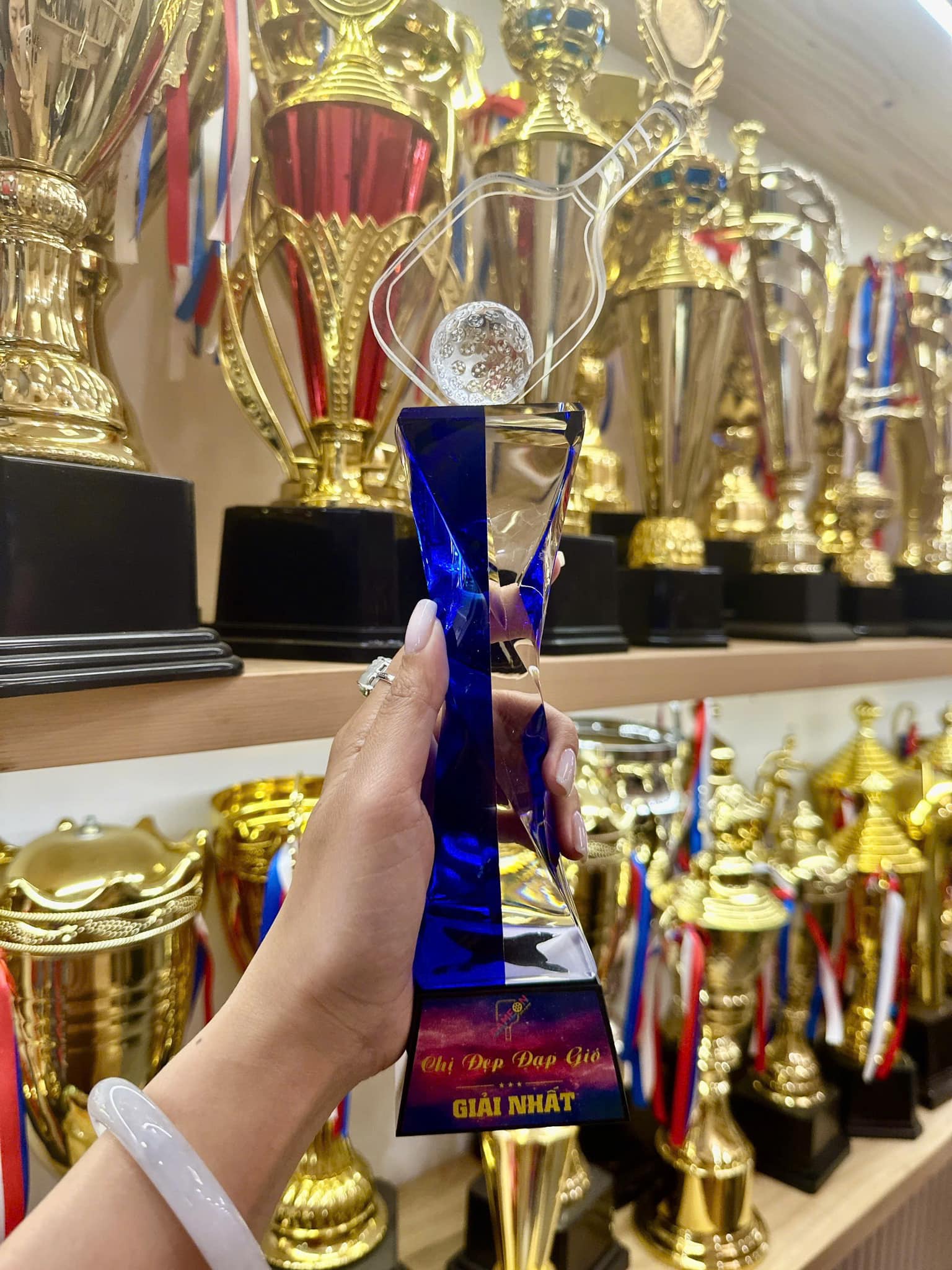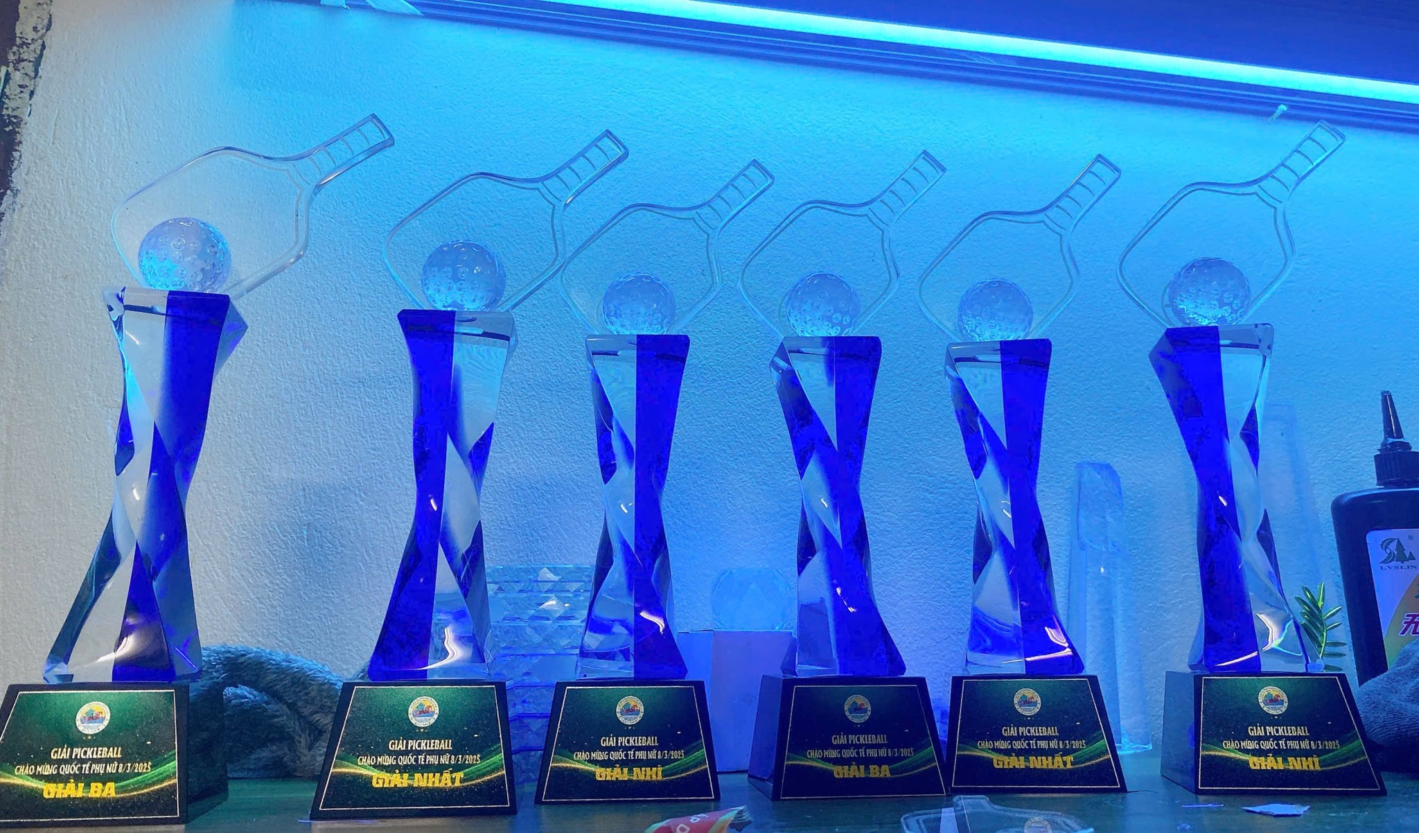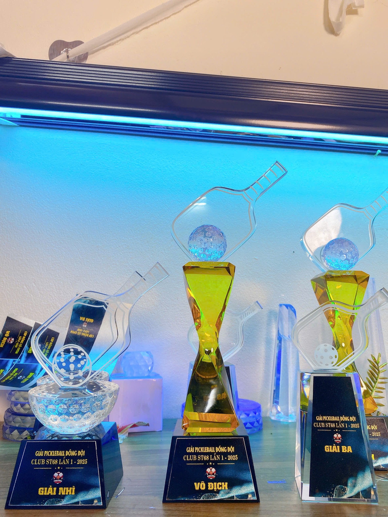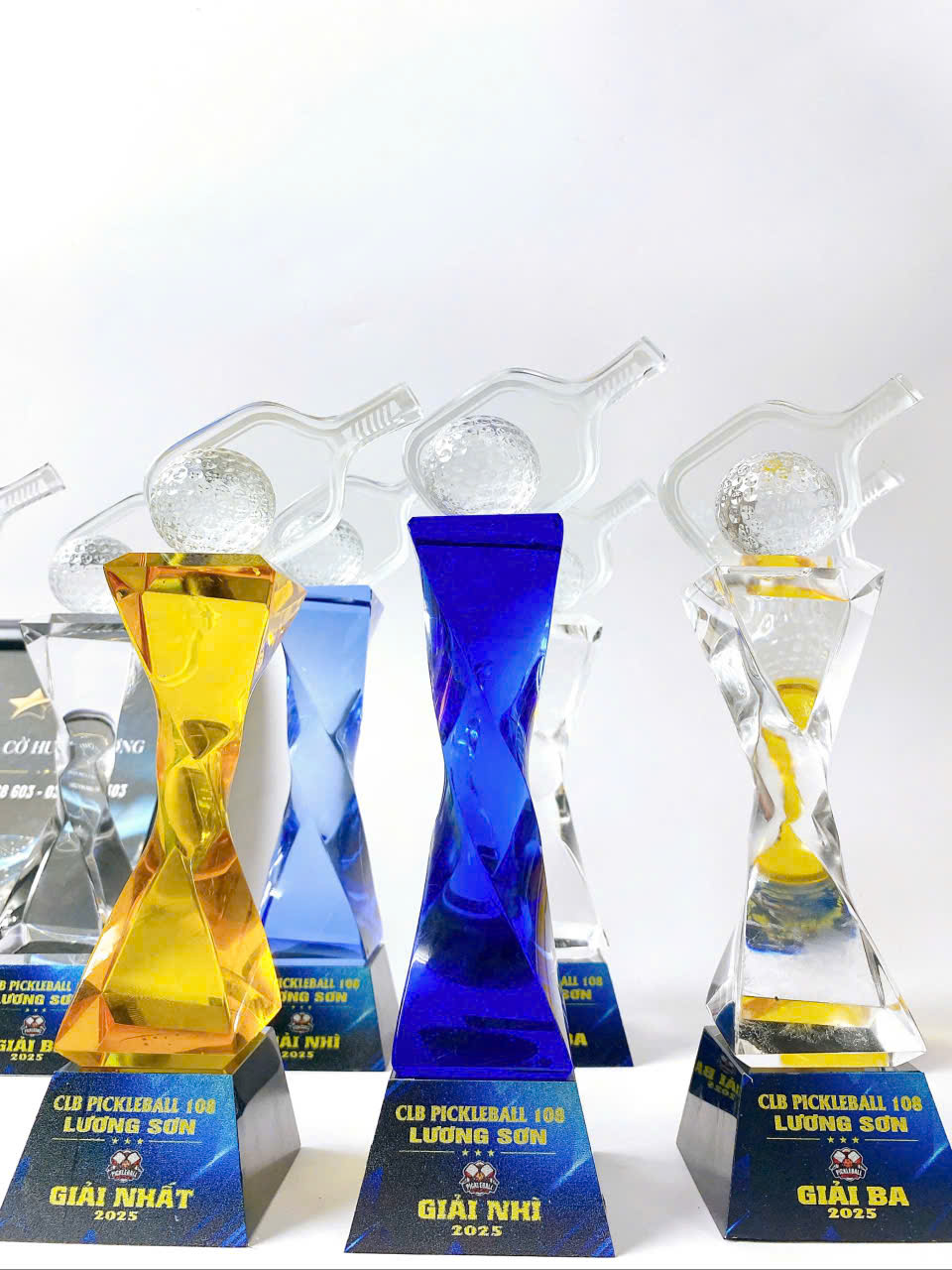 Cúp Pickleball pha lê xoắn có quả cầu
